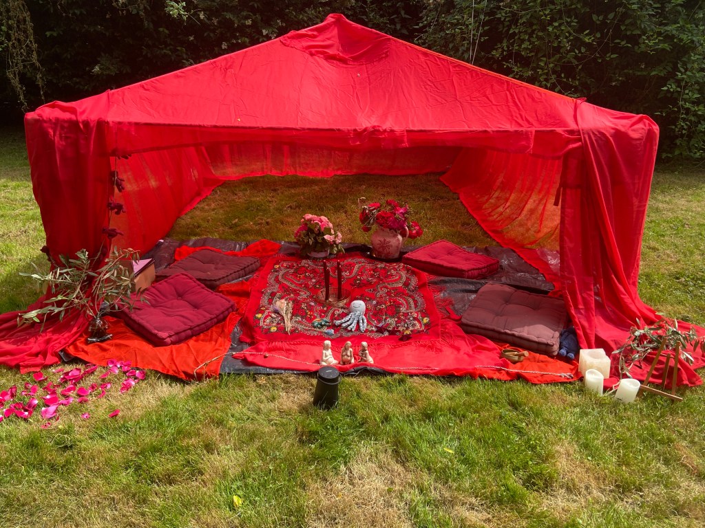 J’ai souhaité créer la tente rouge, pour que chacune de vous puissiez vous sentir en sécurité dans cette espace restreint, chaleureux, accueillant.
